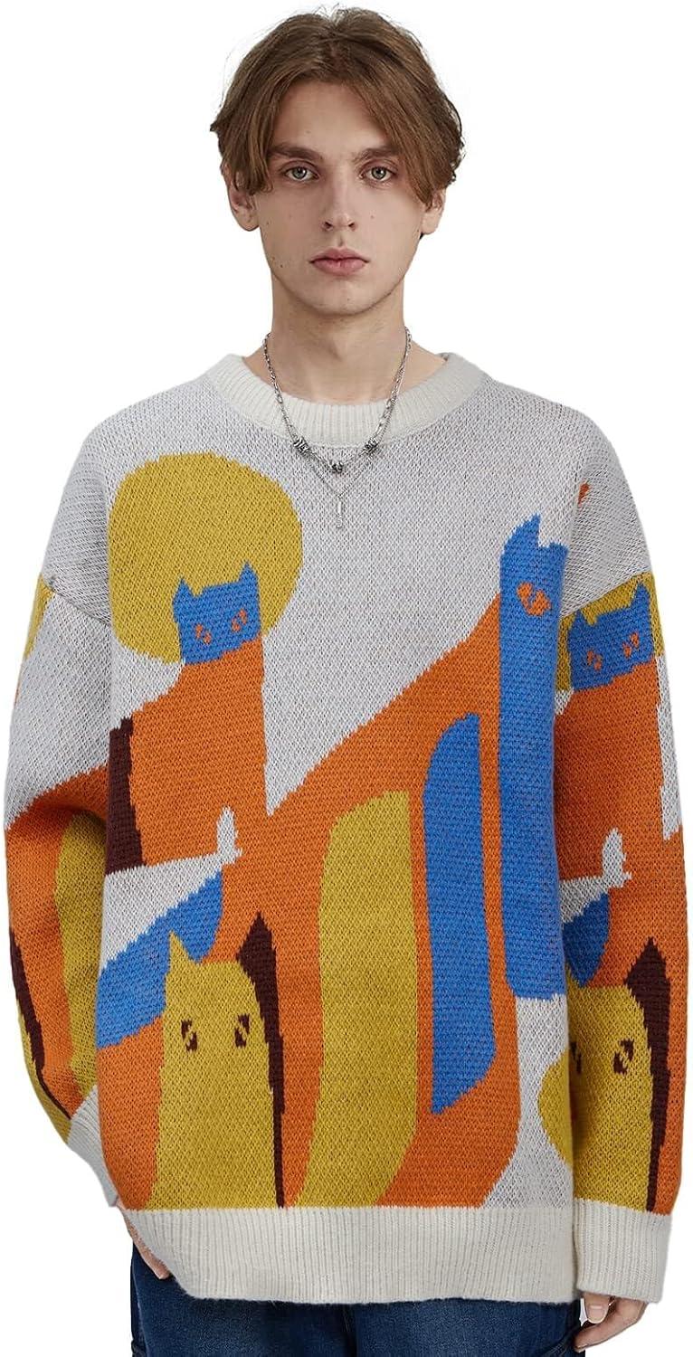 Aelfric Eden Cartoon Dinosaur Sweaters Graphic Crewneck Printed Oversized Pullover Sweater Couple Tops(Black)