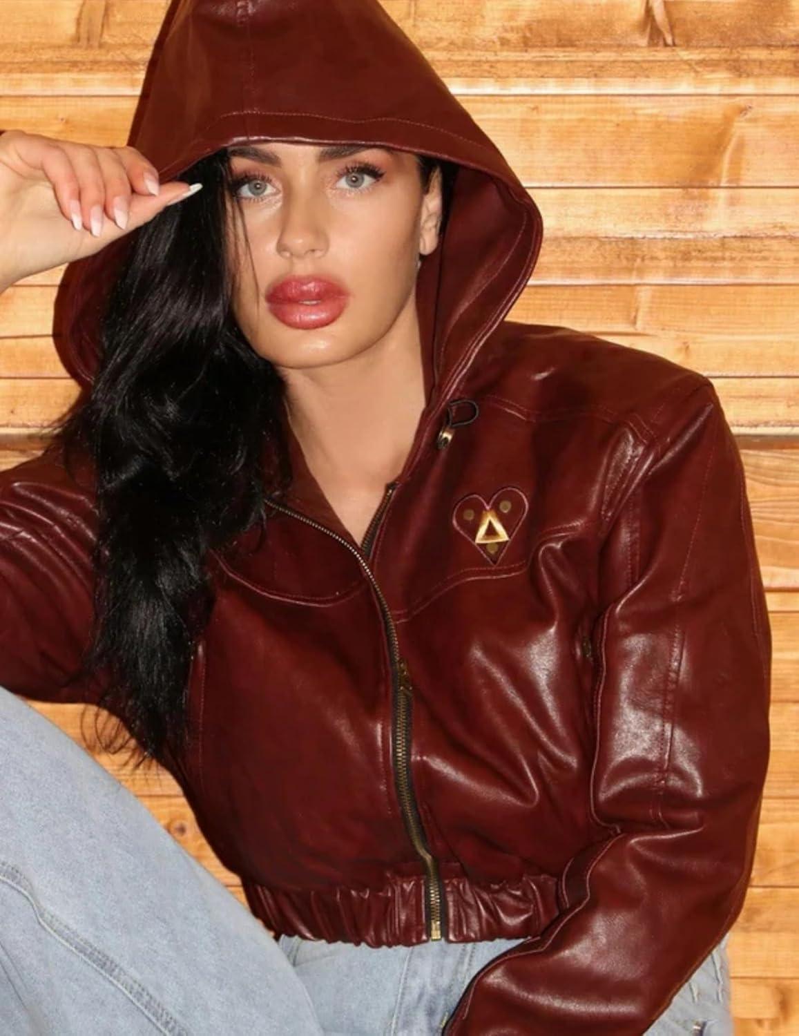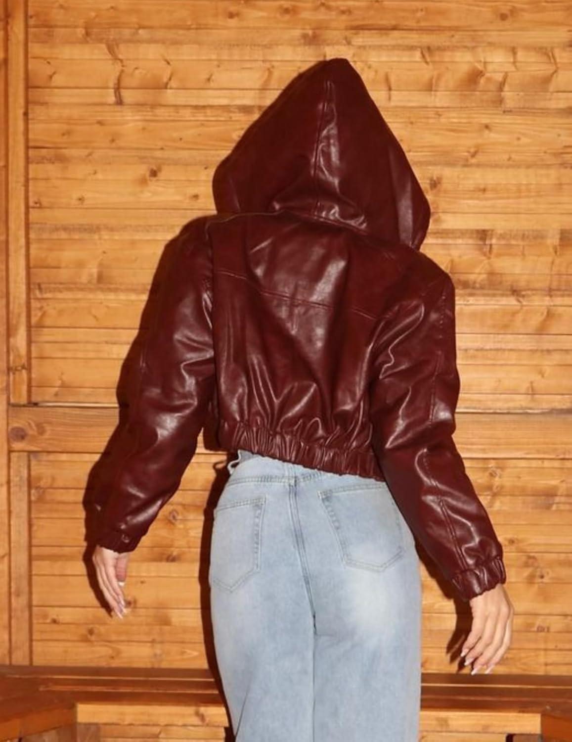 imageAelfric Eden Jackets Cropped Faux Leather Hooded Jacket Vintage Fashion Casual Motorcycle Coats Y2k Dressy OutfitsRed