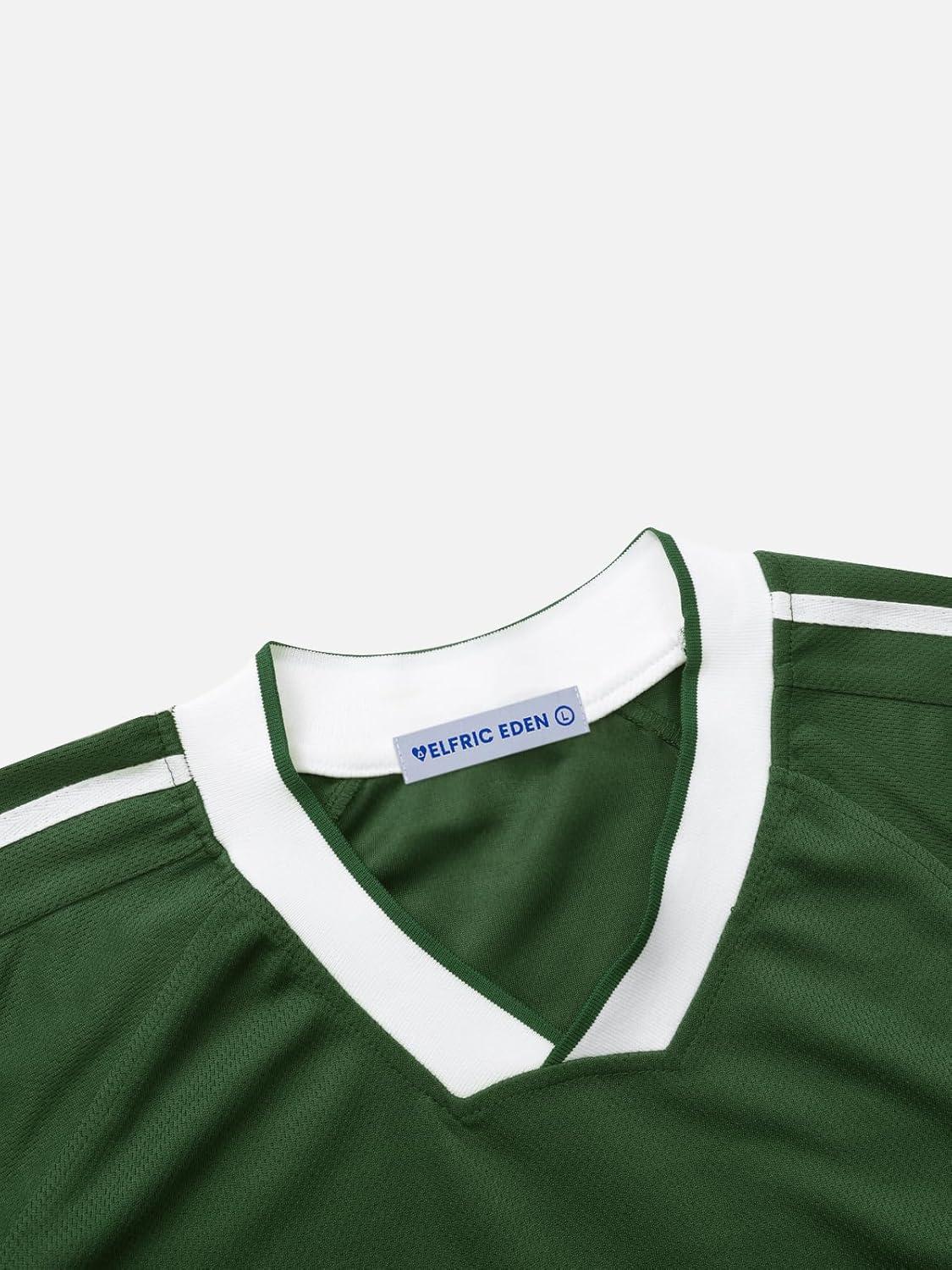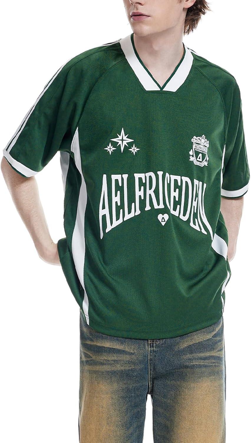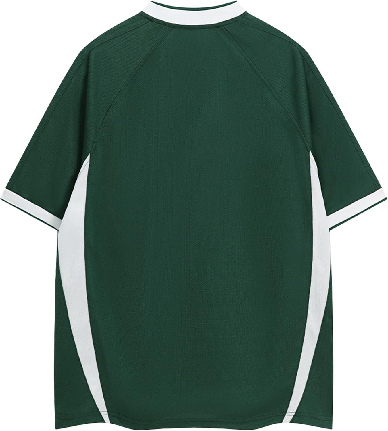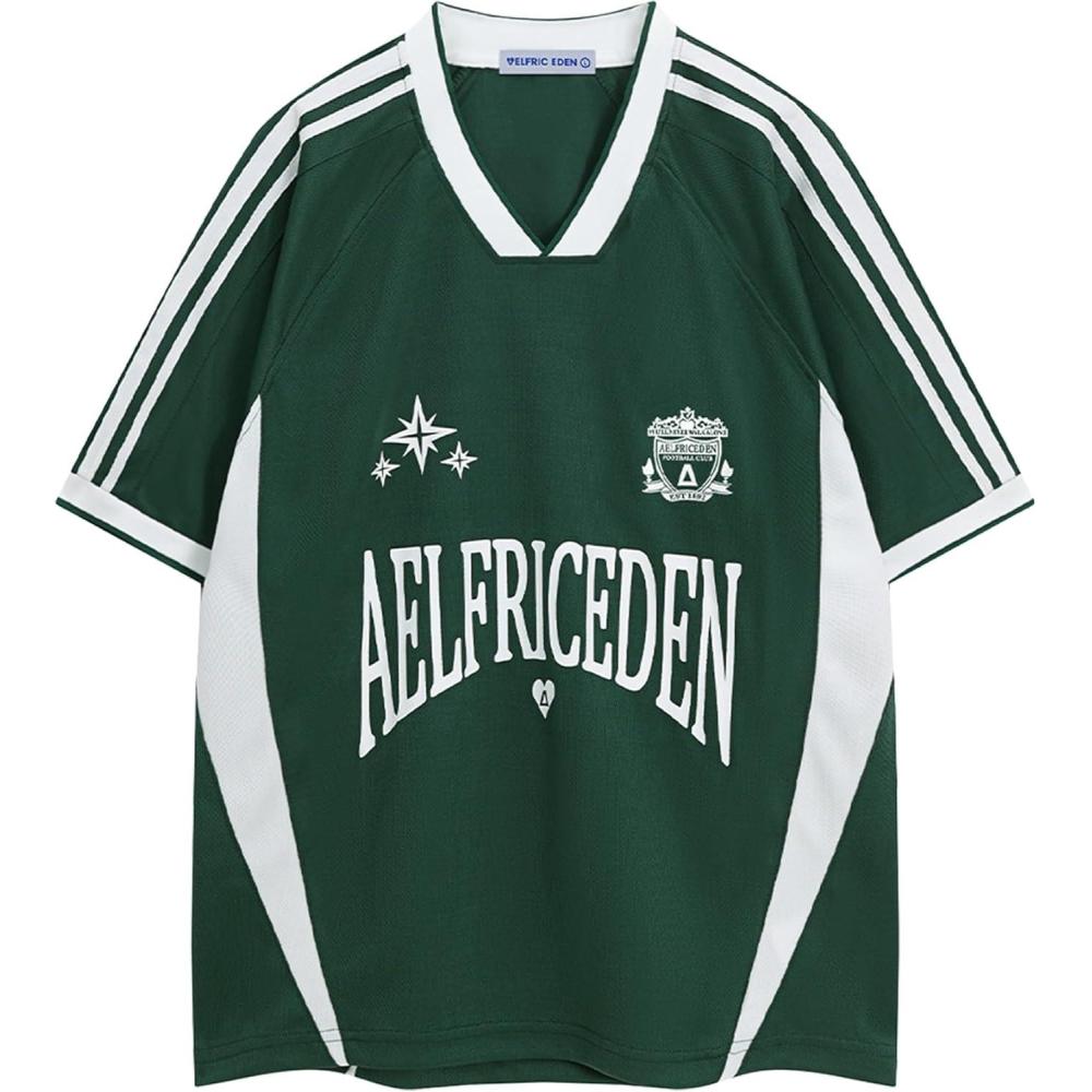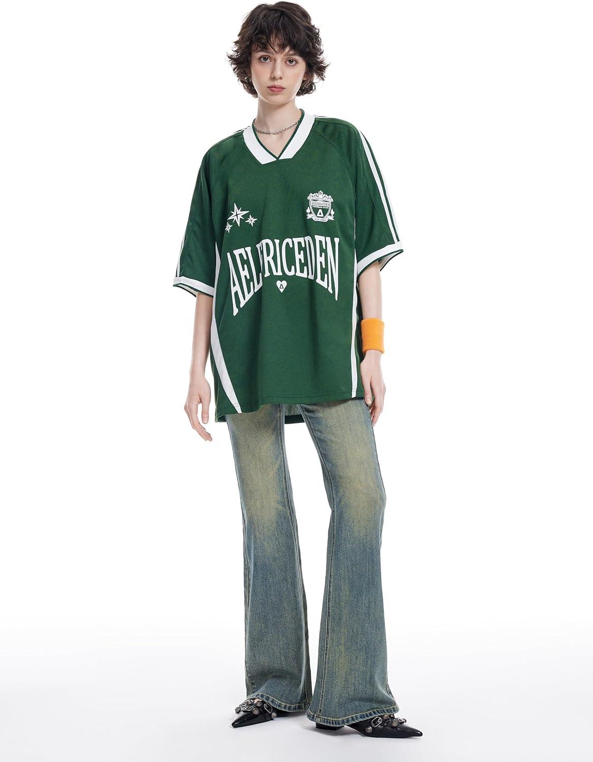 Aelfric Eden Jersey Shirts Women Oversized Mesh V Neck Graphic Tees Y2k Color Block Short Sleeve T Shirt Tops(Green)