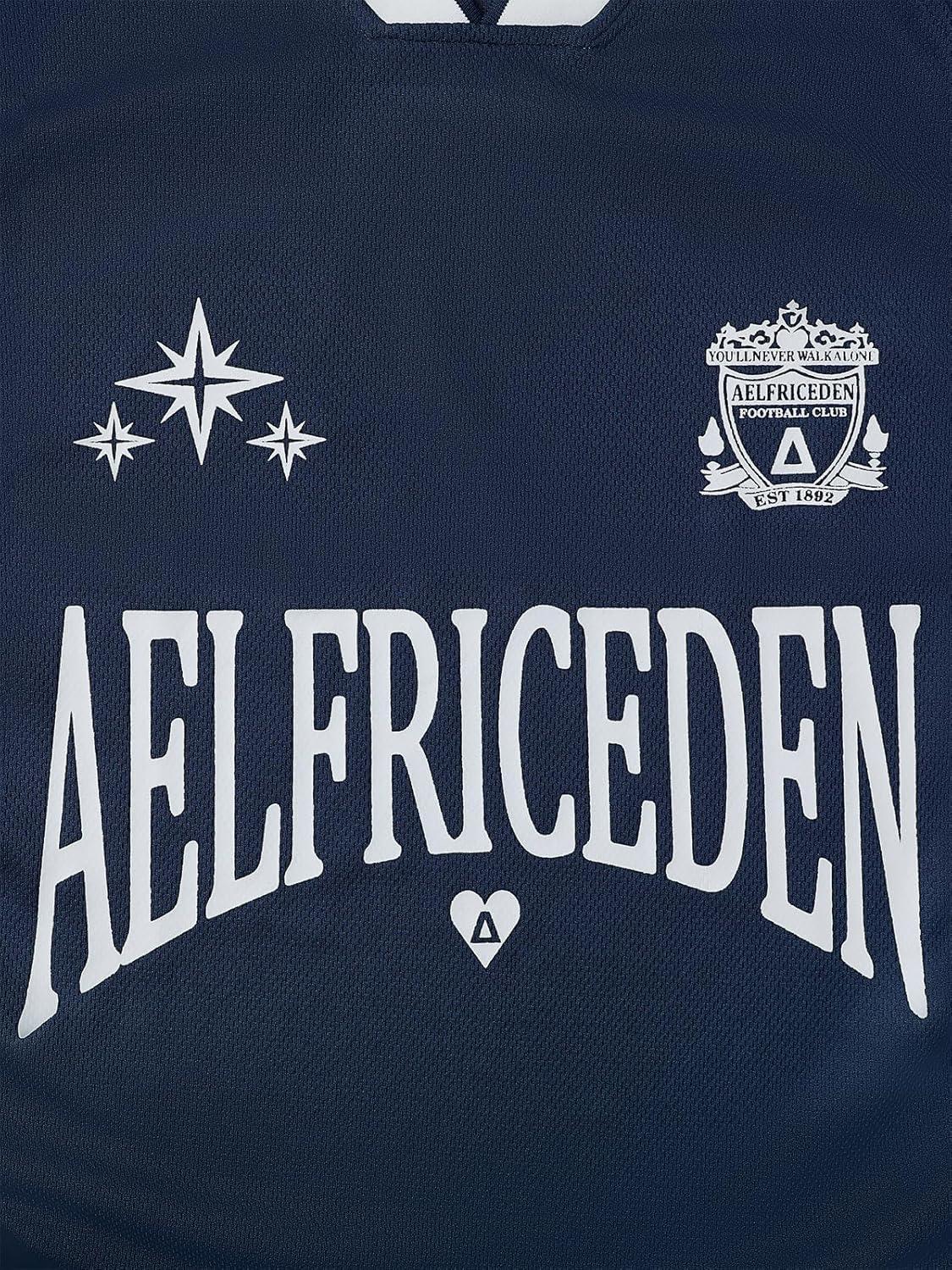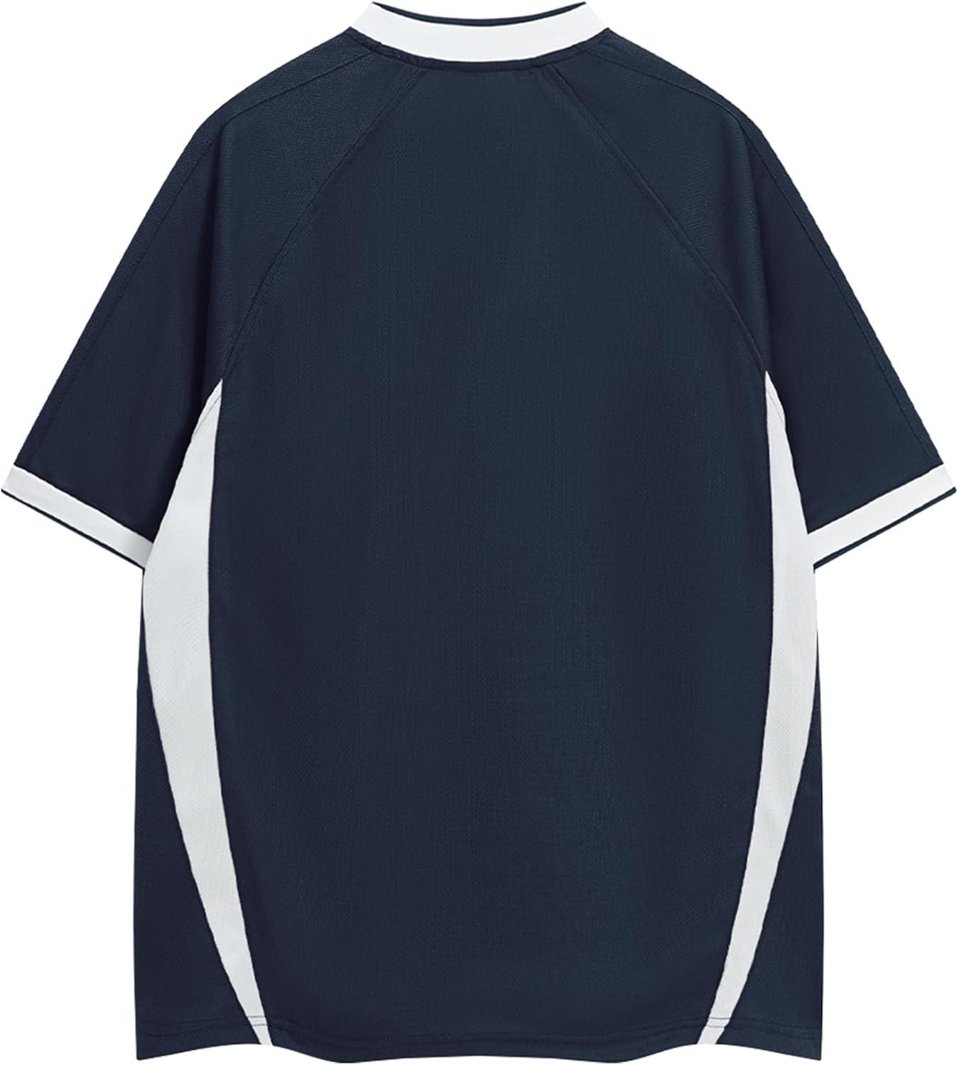 Aelfric Eden Jersey Shirts Women Oversized Mesh V Neck Graphic Tees Y2k Color Block Short Sleeve T Shirt Tops(Navy Blue)