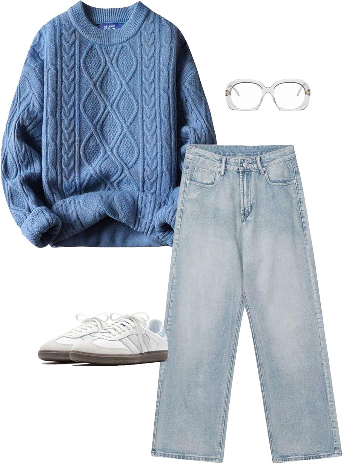 Our clearance event features the best deals on Aelfric Eden Oversized Sweater 90s Vintage Cable Knit Long Sleeve Women Heavy Crewneck Pullover(Blue) and accessories. Shop now!