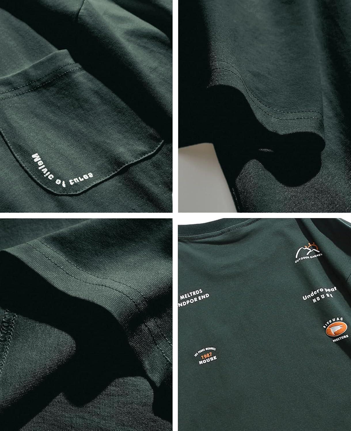Aelfric Eden T Shirts Pocket Print Tee Short Sleeve Basic Tops Trendy Outfits(Dark Green)