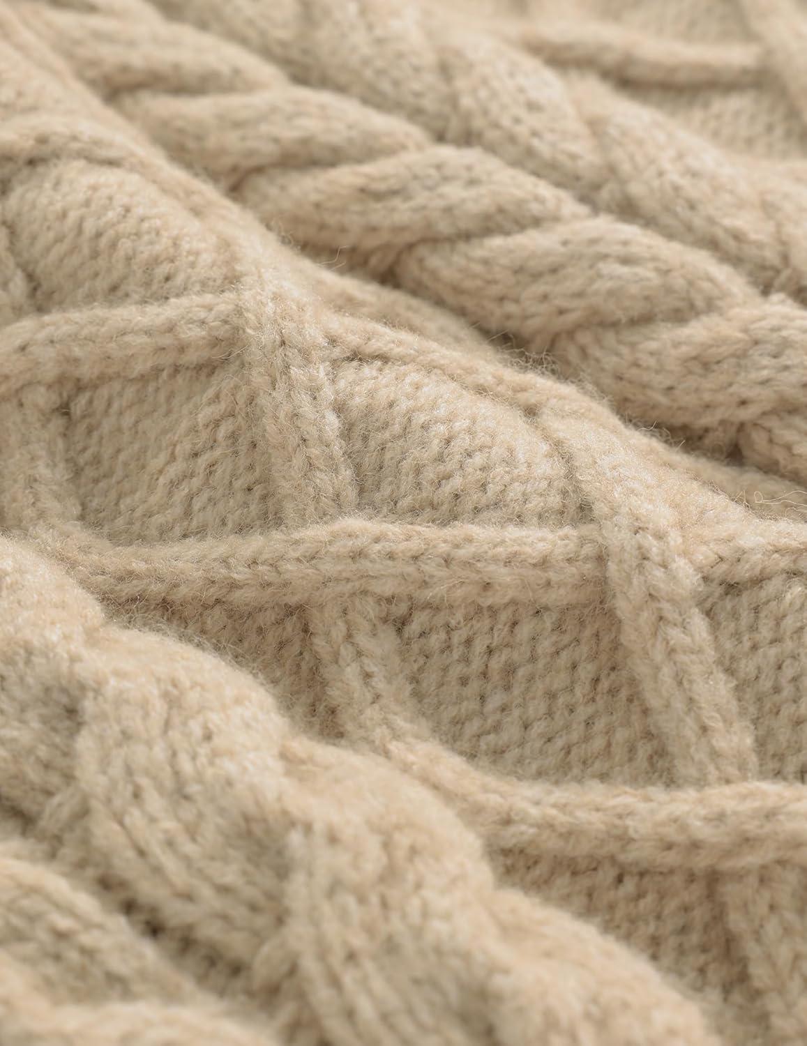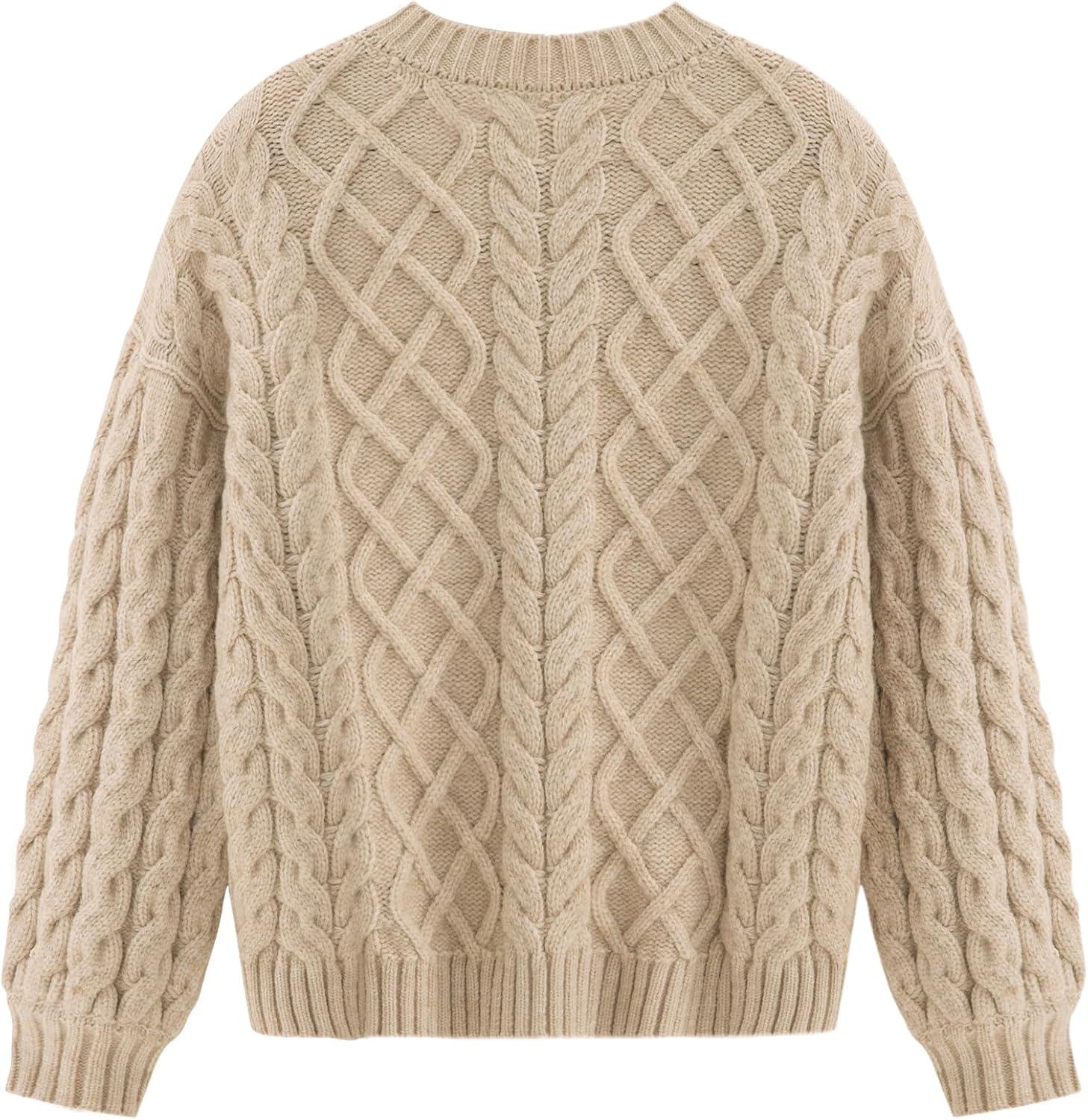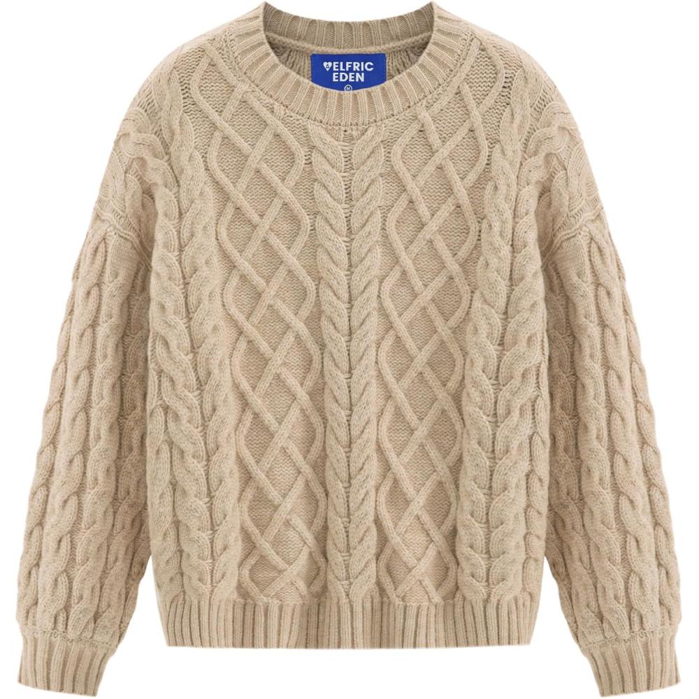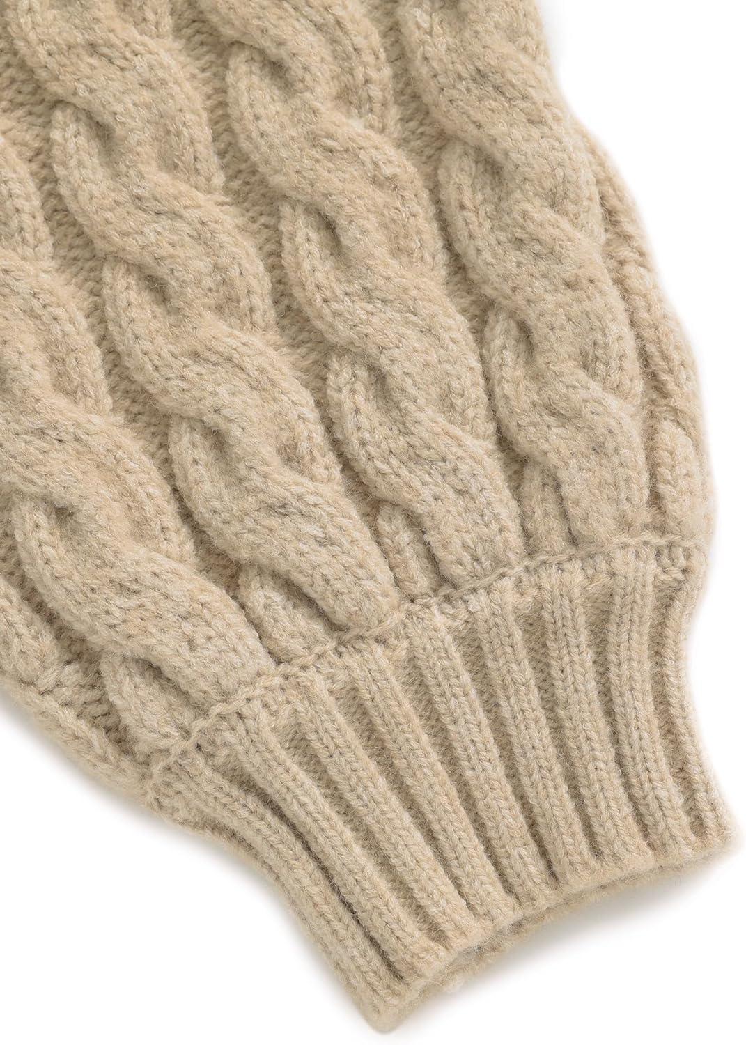 Aelfric Eden Womens Oversized Sweaters 2025 Cable Knit Chunky Sweater Lantern Sleeve Crewneck Pullover Loose Outfits(Beige)