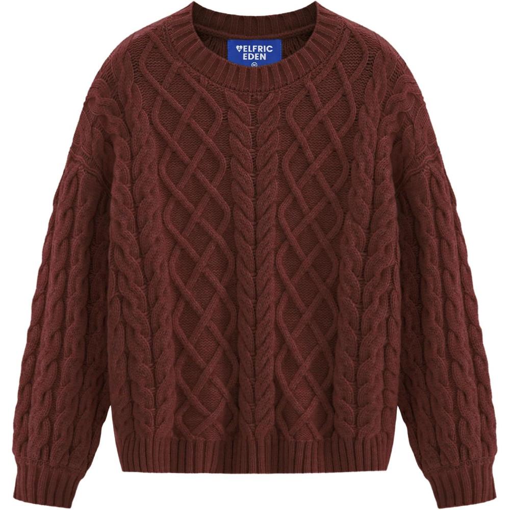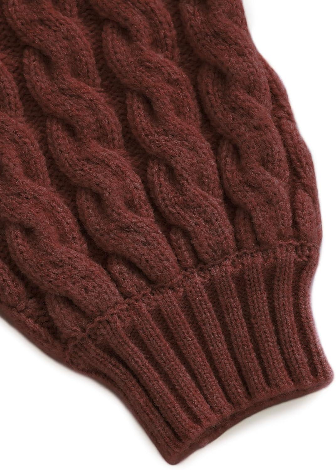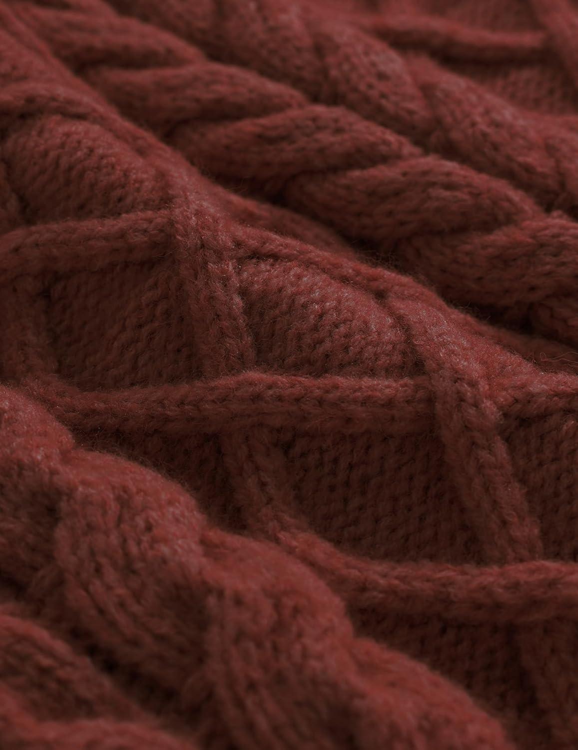 Aelfric Eden Womens Oversized Sweaters 2025 Cable Knit Chunky Sweater Lantern Sleeve Crewneck Pullover Loose Outfits(Red)