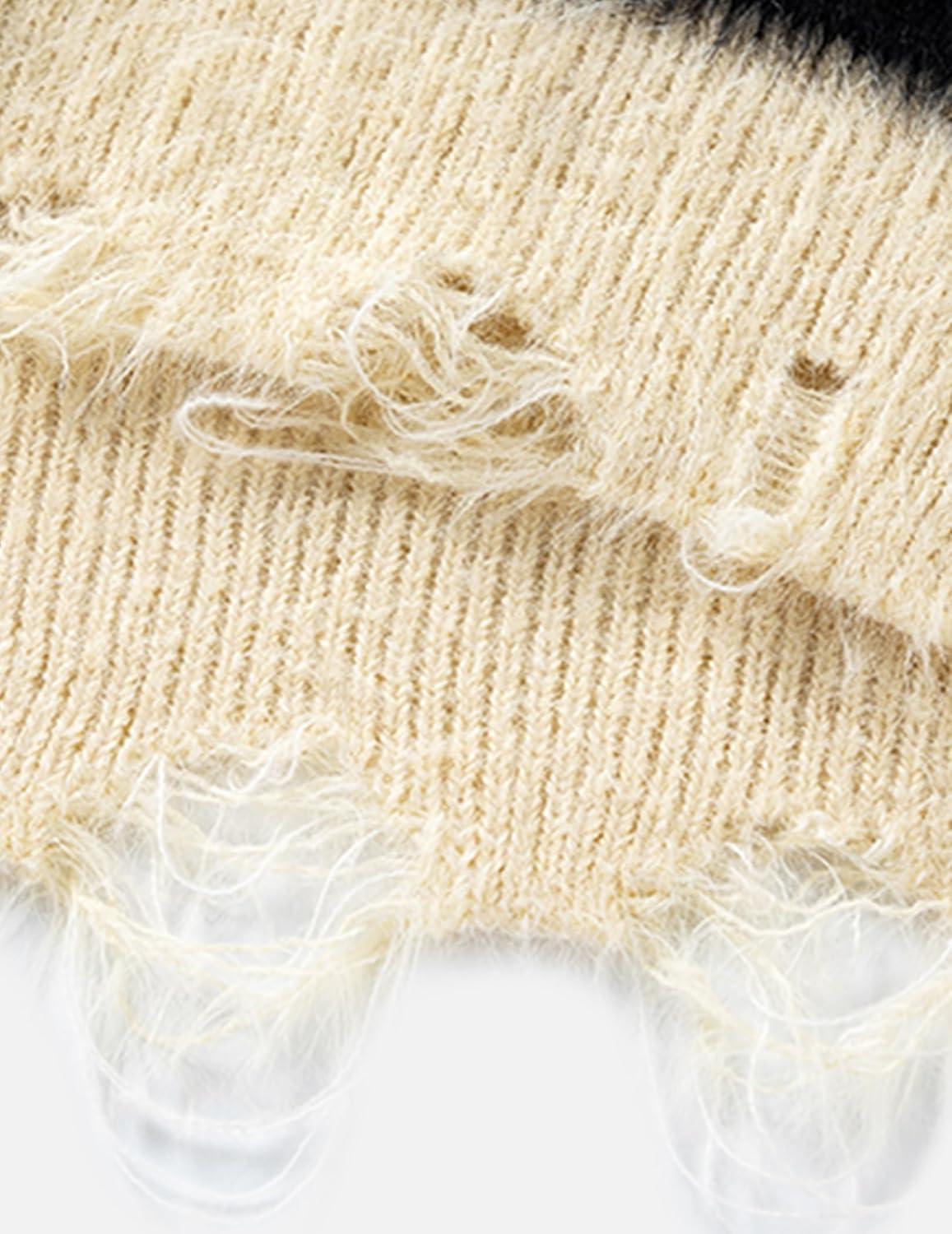 Aelfric Eden Women’s Pullover Sweater Color Blocking Cat Graphic Sweater Casual Soft Warm Fall Winter Knitted Tops(Apricot)