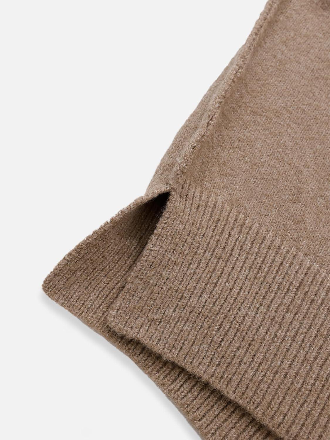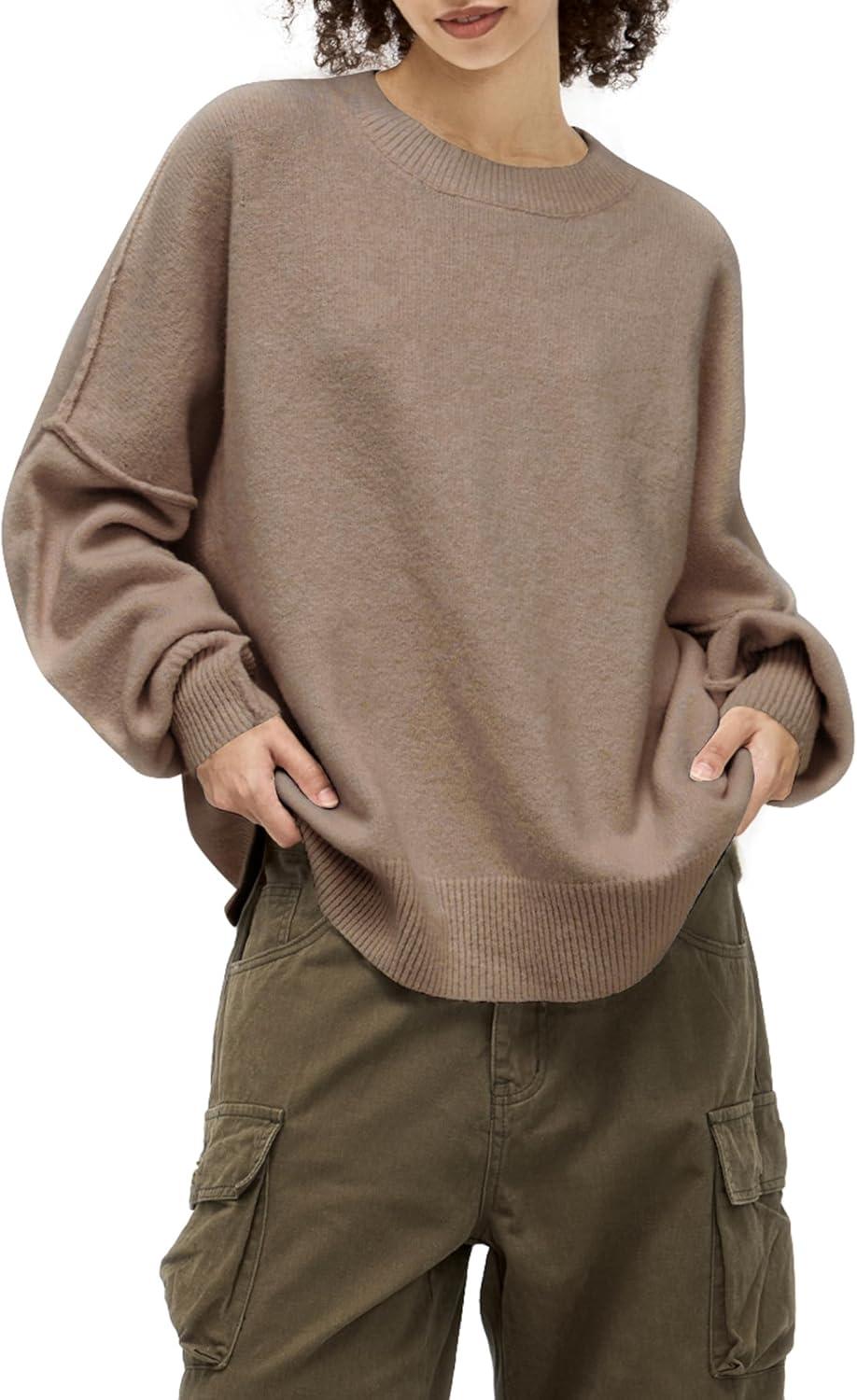 Aelfric Eden Women's Sweaters Oversized Crewneck Fall Sweater Casual Batwing Ribbed Knit Side Slit Pullover Tops(Light Coffee)