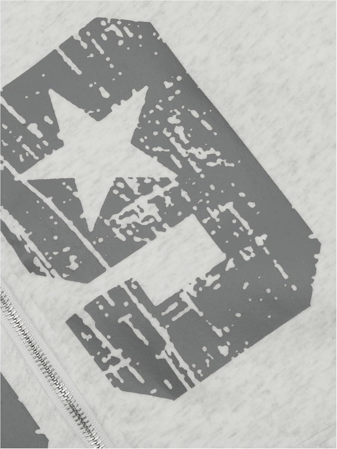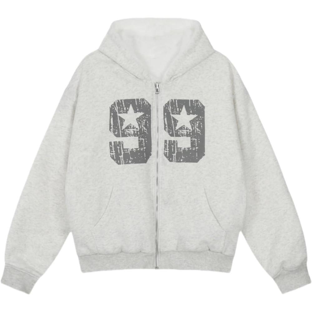 【Design】: Number print pattern,zip up closure,loose fit,long sleeves,slant front pocket, fleece lined